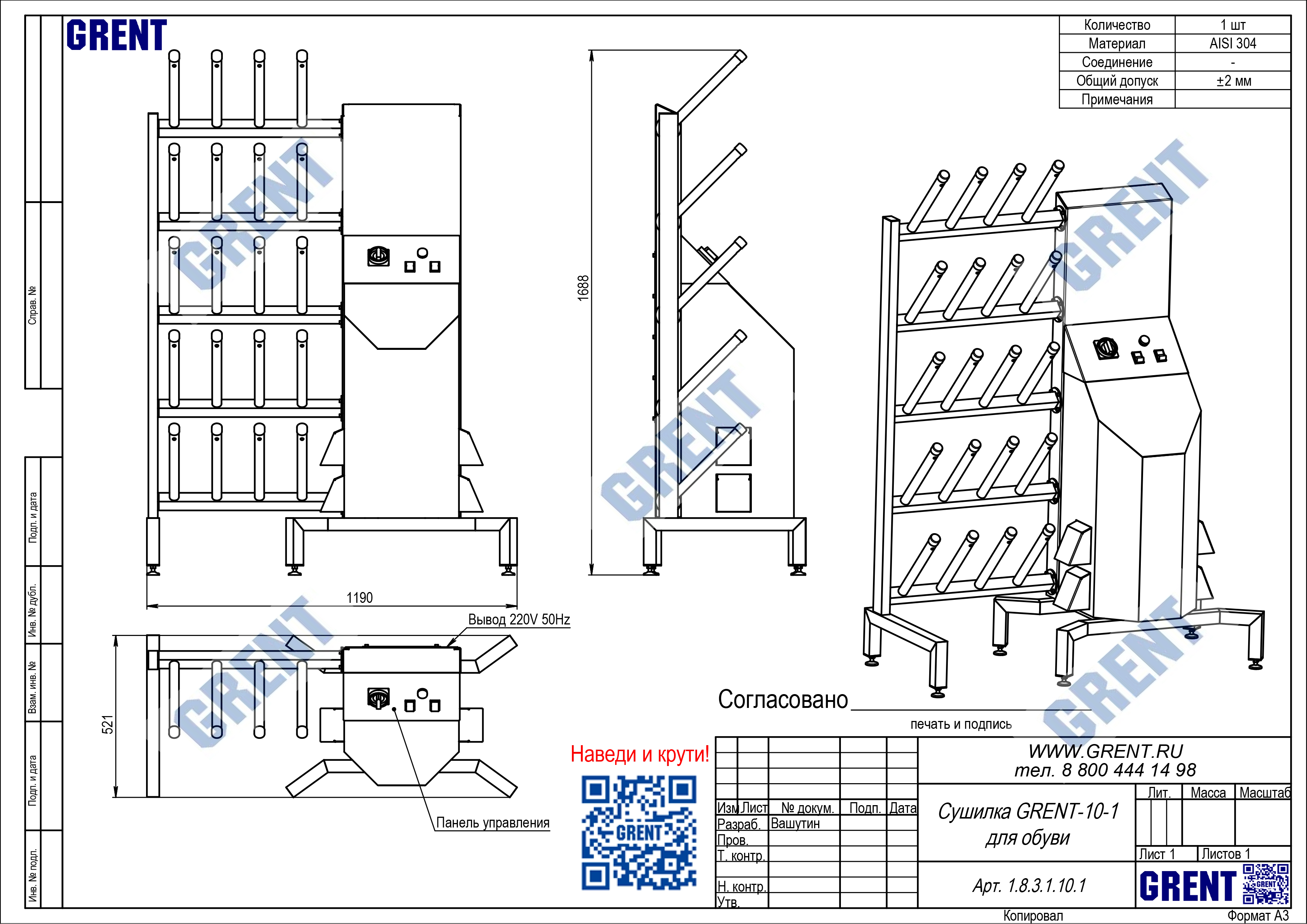 - материал — нержавеющая сталь AISI 304